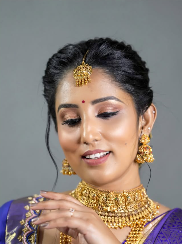 The Poonam Exclusive Makeup Package is our most luxurious and personalized beauty experience, designed for those who want a truly customized and elegant transformation. Using only the finest high-end products from brands like MAC, Huda Beauty, NARS, Bobbi Brown, Makeup Forever, and more, this package is tailored to complement your outfit, event, skin tone, and the overall day or night look you desire. Whether you're a bride or attending a special occasion, we craft a flawless look with detailed eye makeup, full-coverage foundation, expert contouring, and perfect lip styling. In addition to makeup, this package includes professional hairstyling, with options like elegant updos, soft curls, or sleek styles, all enhanced with matching hair accessories. For traditional events, we also offer expert saree draping, ensuring every pleat is perfectly in place. Every element of this package is thoughtfully designed to suit the theme and mood of your event, leaving you feeling confident, radiant, and picture-perfect. This is more than just makeup—it's a complete transformation that brings out the best version of you.